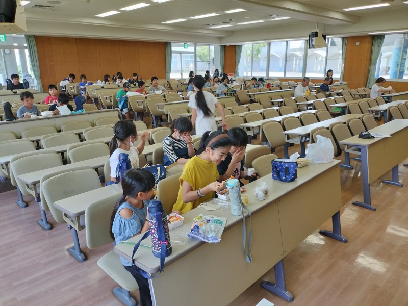 1日目のお昼ご飯は、弁当です。女の子は若宮と三芳の子ども達が一緒に食べてました。
