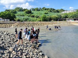 そして、いよいよ、中野川に入り、住んでいる生き物から水質を調査します。。