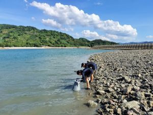 川の石を裏返して、ピンセットや筆を使いながら、いろんな生き物を採集。