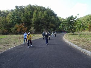 公園では、約1.5kmのジョギングコースをウォーキング。