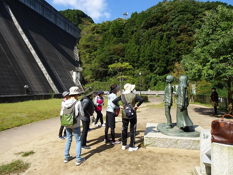 ダム本体を歩いてみたり、下流広場では「進撃の巨人」の銅像を観たり、
