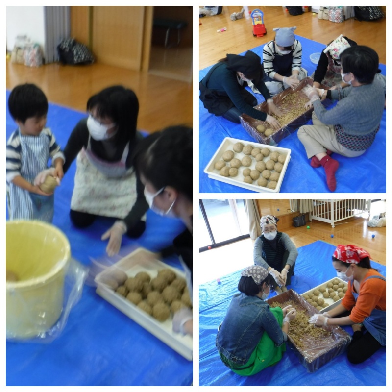 5月7日(月) 昨年11月の子育てサロンで作ったお味噌が出来上がり、 本日、社協の皆さんに協力いただき袋詰め作業を行いました。