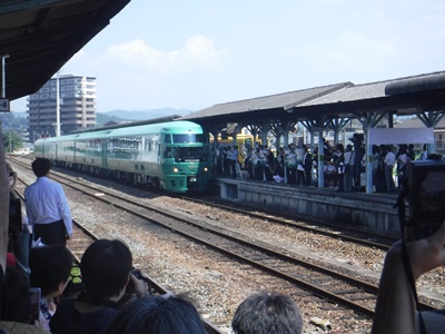 ゆふいんの森号 日田駅到着の瞬間。多くの市民で日田駅はすごい熱気でした。