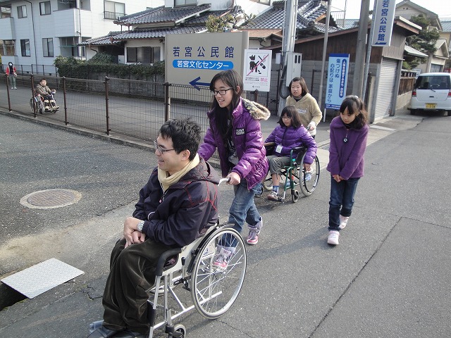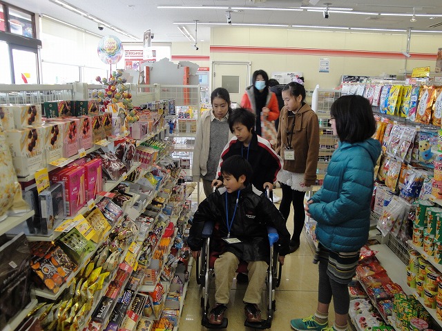 その後は、実際に車椅子に乗り、近くのコンビニエンスストアまで買い物