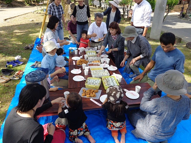 おにぎりやから揚げ、タマゴ焼きなどをみんなで食べました。