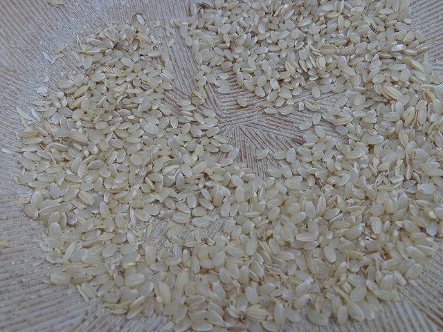 もみを被っている米も、ソフトボールでグリグリすると…、