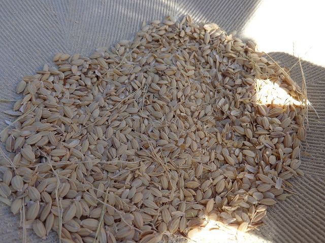 先々週刈って干したバケツ稲の脱穀ともみすりを10月18日(土)に