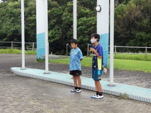 波戸岬少年自然の家 所長さんのあいさつと、児童代表者からのあいさつで、