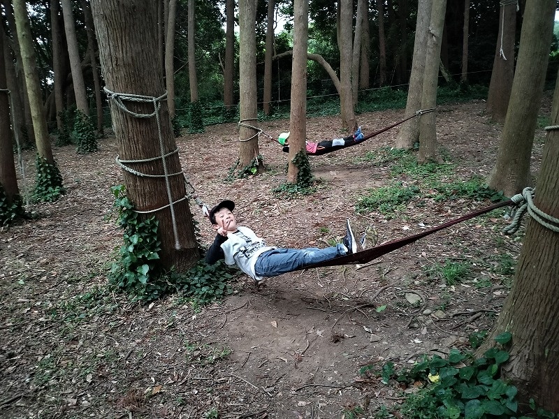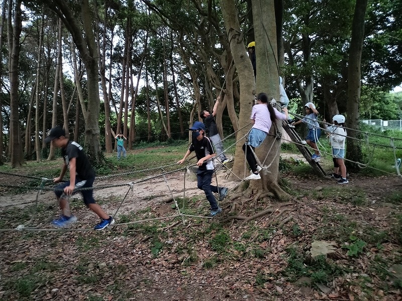 野外炊飯場のすぐそばに、「波戸の森」というアスレチック場があったので、