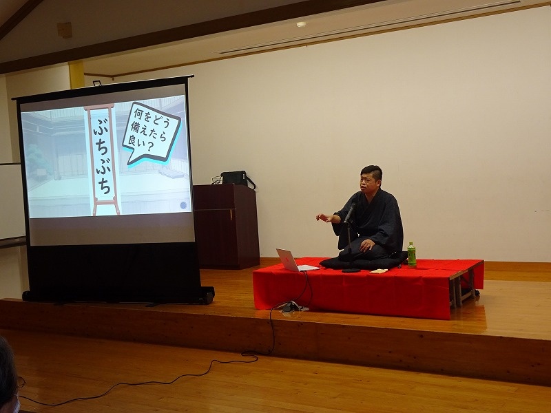 「ぼうさい落語から学ぶ、三隈川の環境」と題して、