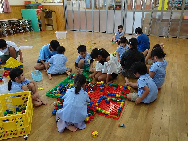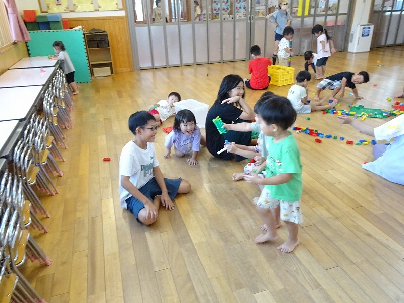 一緒に絵本を読んだり、プールで遊んだり、ブロックで遊んだりするうちに仲良くなり、
