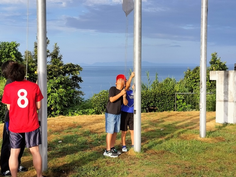 今日の予定は、ペーロン漕艇・海水浴・磯観察・流木ストラップ作りです。