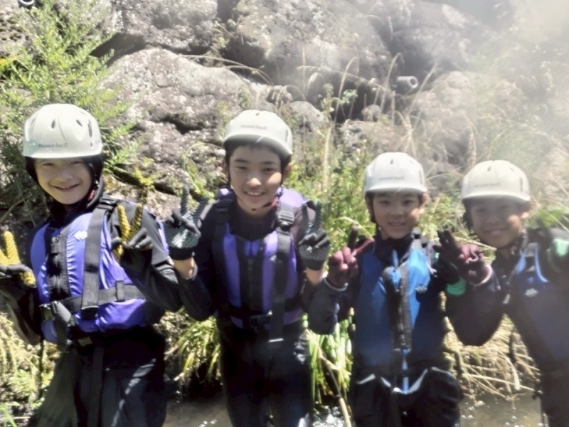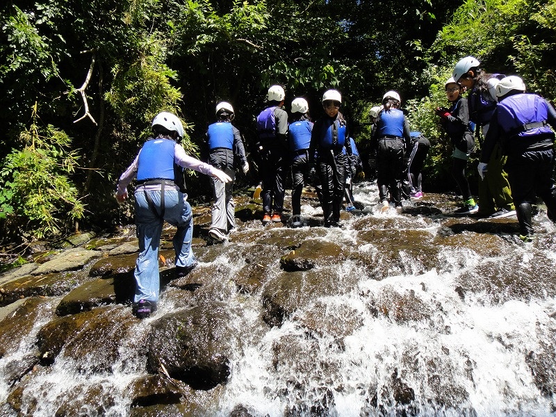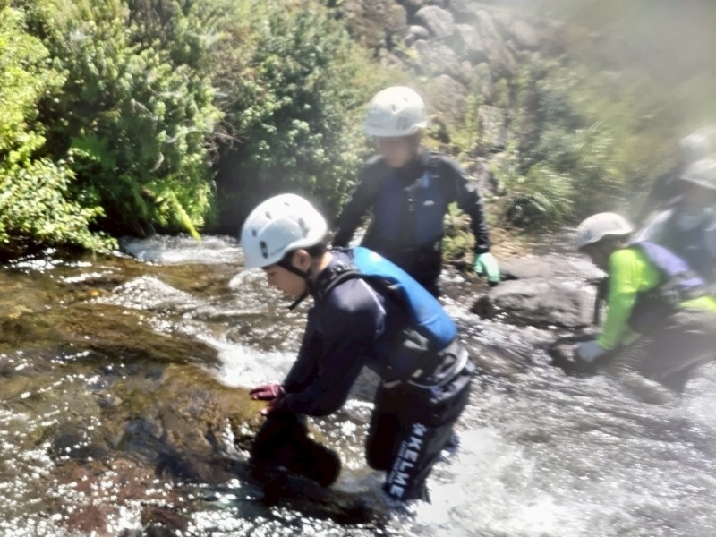 A班は、沢登り(AM)→ 草原トレッキング(PM)