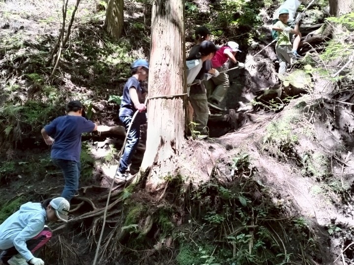 A班は時間がなく、ロープを使って斜面を超える場所には行けず、