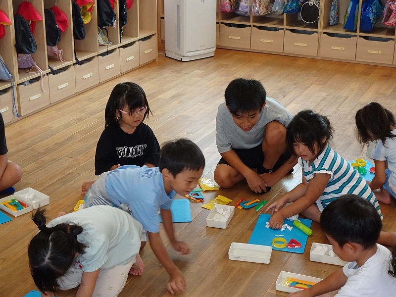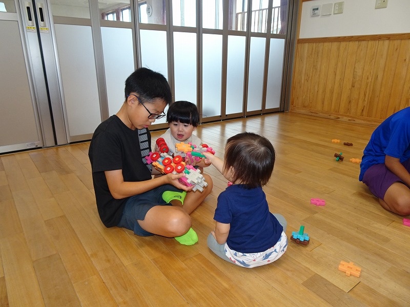 一緒に絵本を読んだり、粘土遊びをしたり、ブロックで遊んだり、
