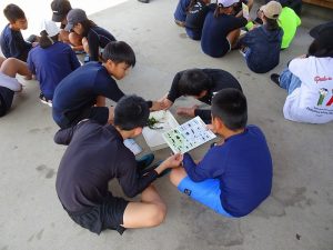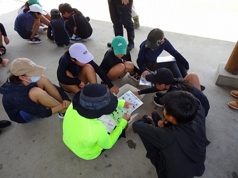 生き物が集まったら、図鑑で生き物の名前を調べました。