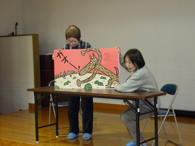 サポーターの方が、図書館から紙芝居と大きな絵本を借りて来てくださり、