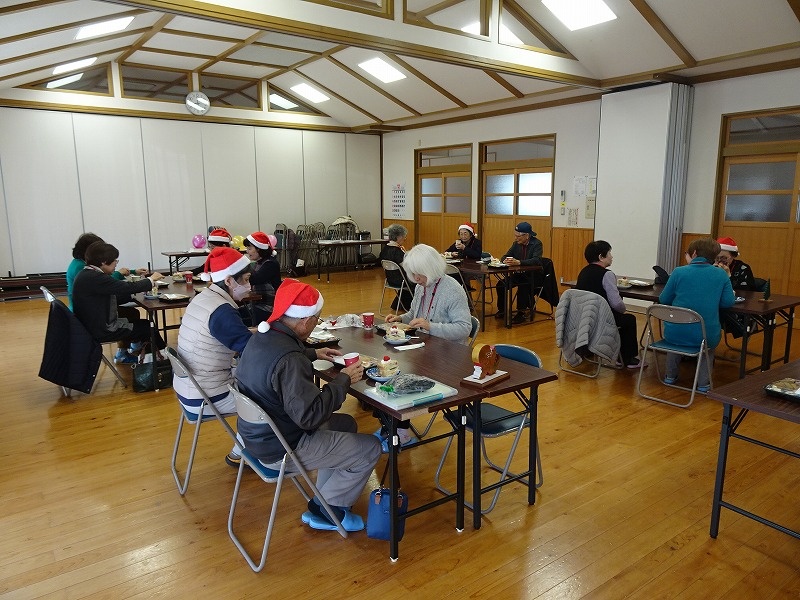 その後、サンタさんから?プレゼントをもらい、最後に会食交流会。