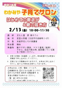 2月の「わかみや子育てサロン」は、はじめての靴選び&靴の履き方です。