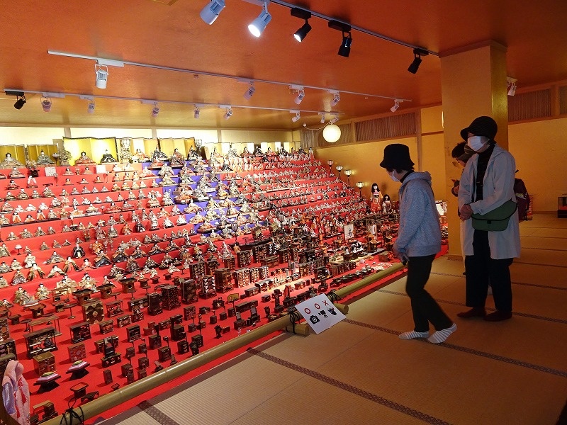 10段に及ぶ豪華な雛壇飾りや日本一の高さを誇る高さ60cmのおひな様、