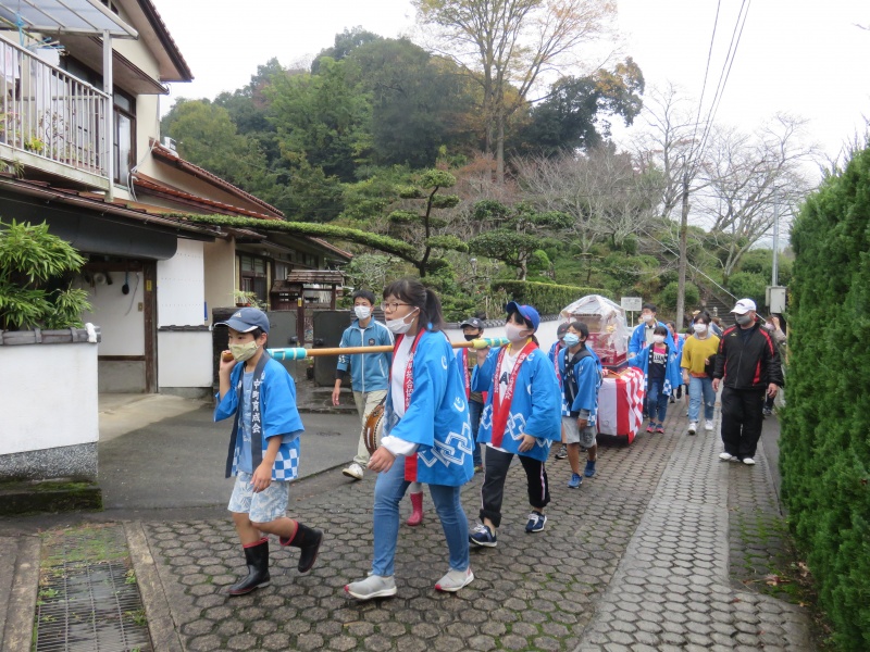 夜明中町育成部の子ども神輿が町内を巡りました。