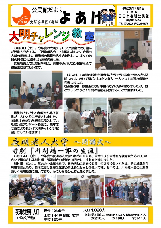 元々文章よりも写真が多い夜明の「公民館だより」が
