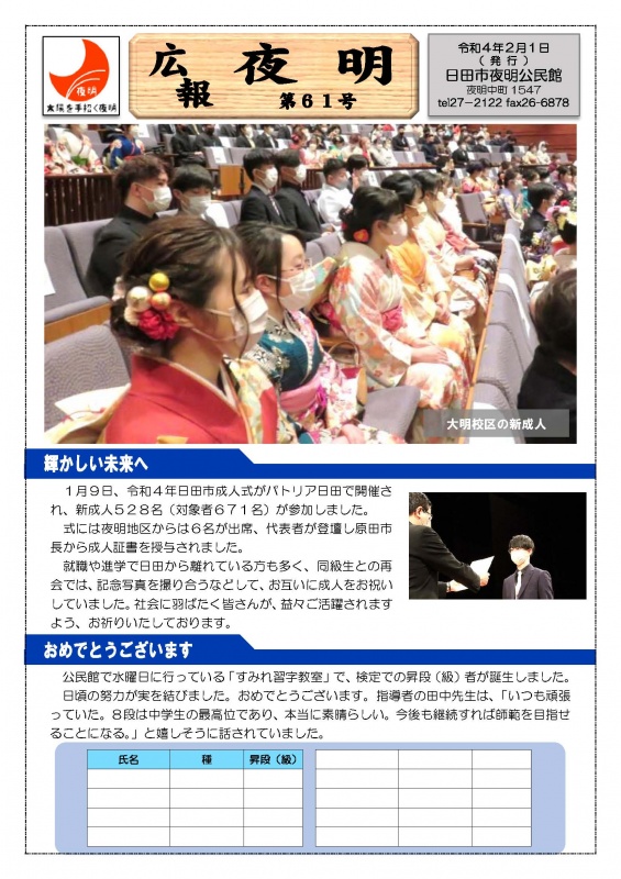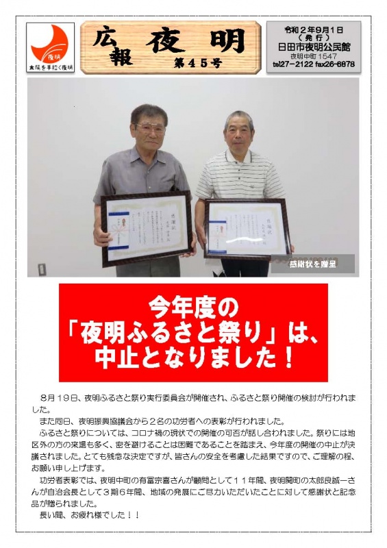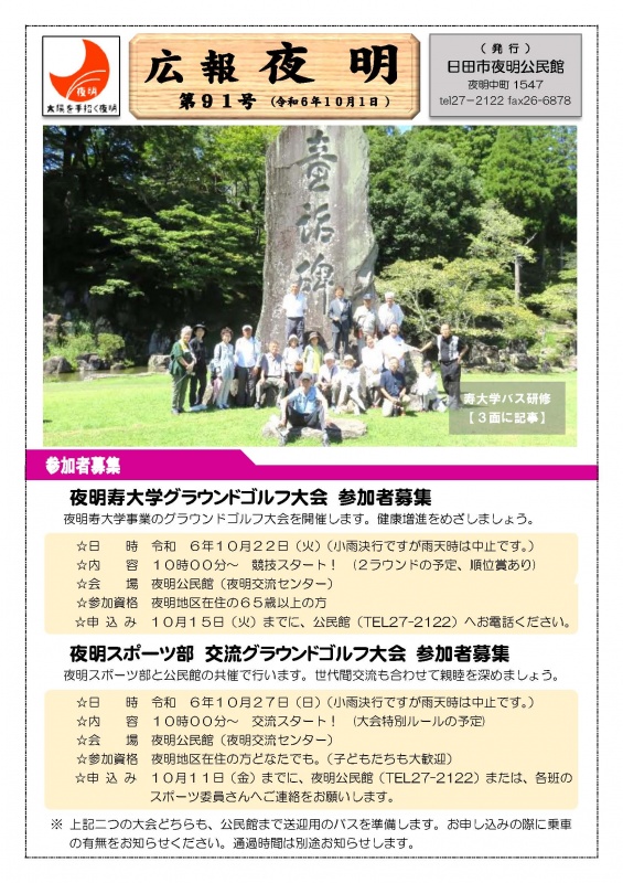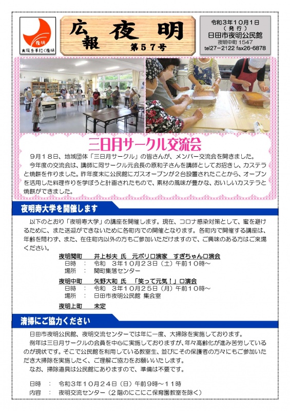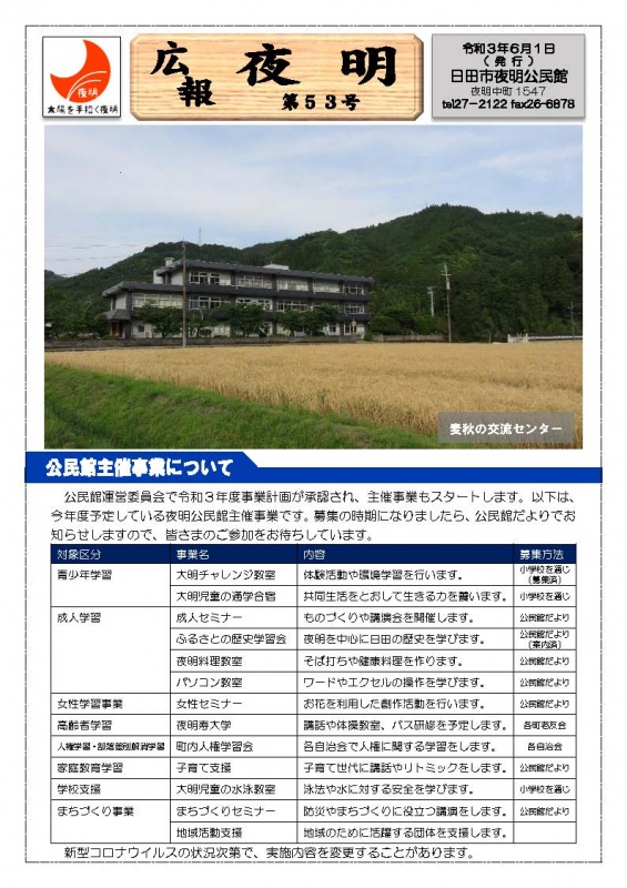 平成27年度 公民館だより『よあけ』(4月~9月)